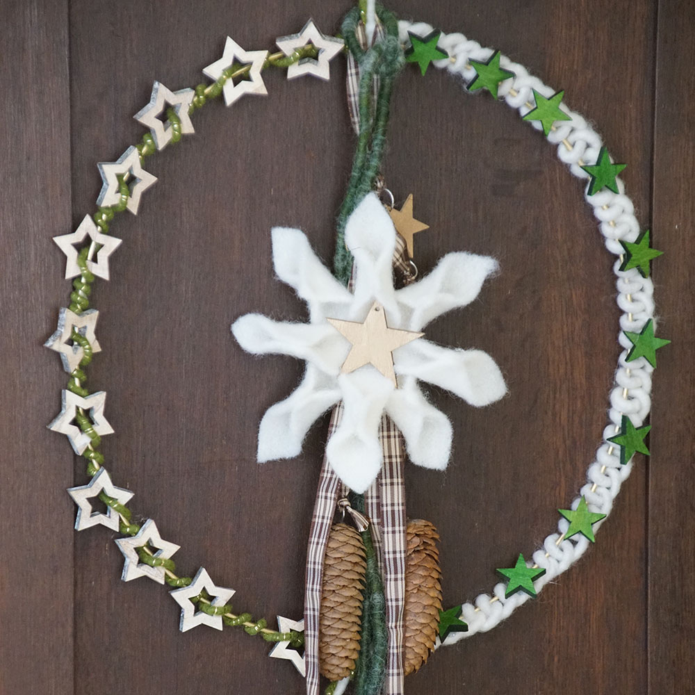 DIYAdventskränze modern und zeitlos. Homedekor für Weihnachten und Advent selbermachen mit Anleitung von Bastelspass24. Viel Naturdeko und Wollprodukte floristisch arrangiert.